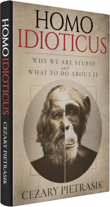 Understanding this paradox and its causes became a bit of an obsession for me and led me to write “Homo idioticus”. This book is the work of love, a friendly, funny, yet rigorous analysis of our stupidity explained in a comforting belief that “we are all in it together”. When I say “we are stupid,” I wholly include myself in this statement.